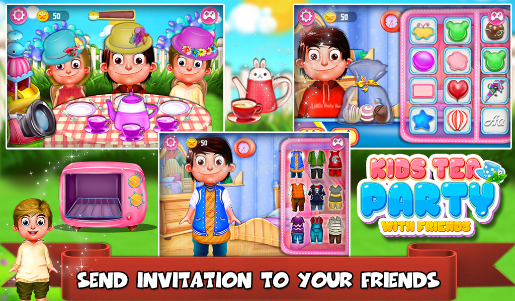 Let's have fun by small Kids Tea Party with friends. Kids are busy making invitations and preparing for party. So let's help them to host at Kids Tea Party with Friends by GameiMax.