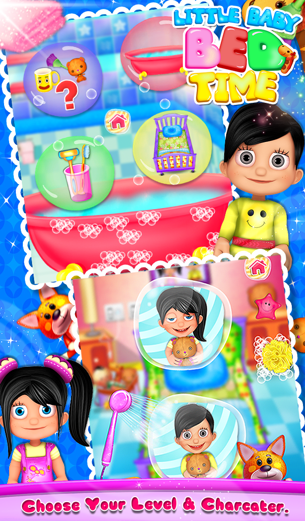 Join Little Baby Bed Time by GameiMax..!!! Here you get chance to play with little baby emma and help her in bedtime activities. Learn and explore the full-fledge experience of bed routine with those 2 adorable babies and 4 different activities. Here in this game you get chance to help those adorable babies in their bedtime activities. First thing before sleeping is hygiene care. Choose different tools for daily routine. Then brush their teeth. Now its bath time..!!! Give a pleasant bath and ap