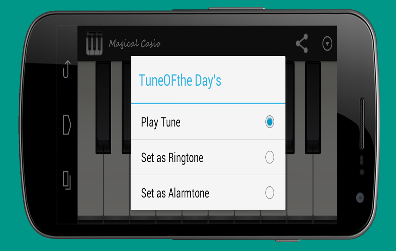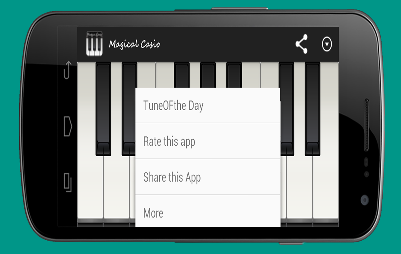 ♪♬♪ Magical Casio ♪♬♪ Magical Casio (Piano) is only one of the light weight version in whole market apps.so, played in easy and comfortable way.The best virtual Magical Casio for Android™. You can play your song slow or fast, all depend on you and your mood and your style. Please try it and play your favorite songs without any practice. Features :- ■ Studio quality sound ■ Support Full Keyboards of Casio. ■ Single Row Mode. ■ Multi-Touch. ■ fullscreen on 3.0+ ■ Touch pressure detec