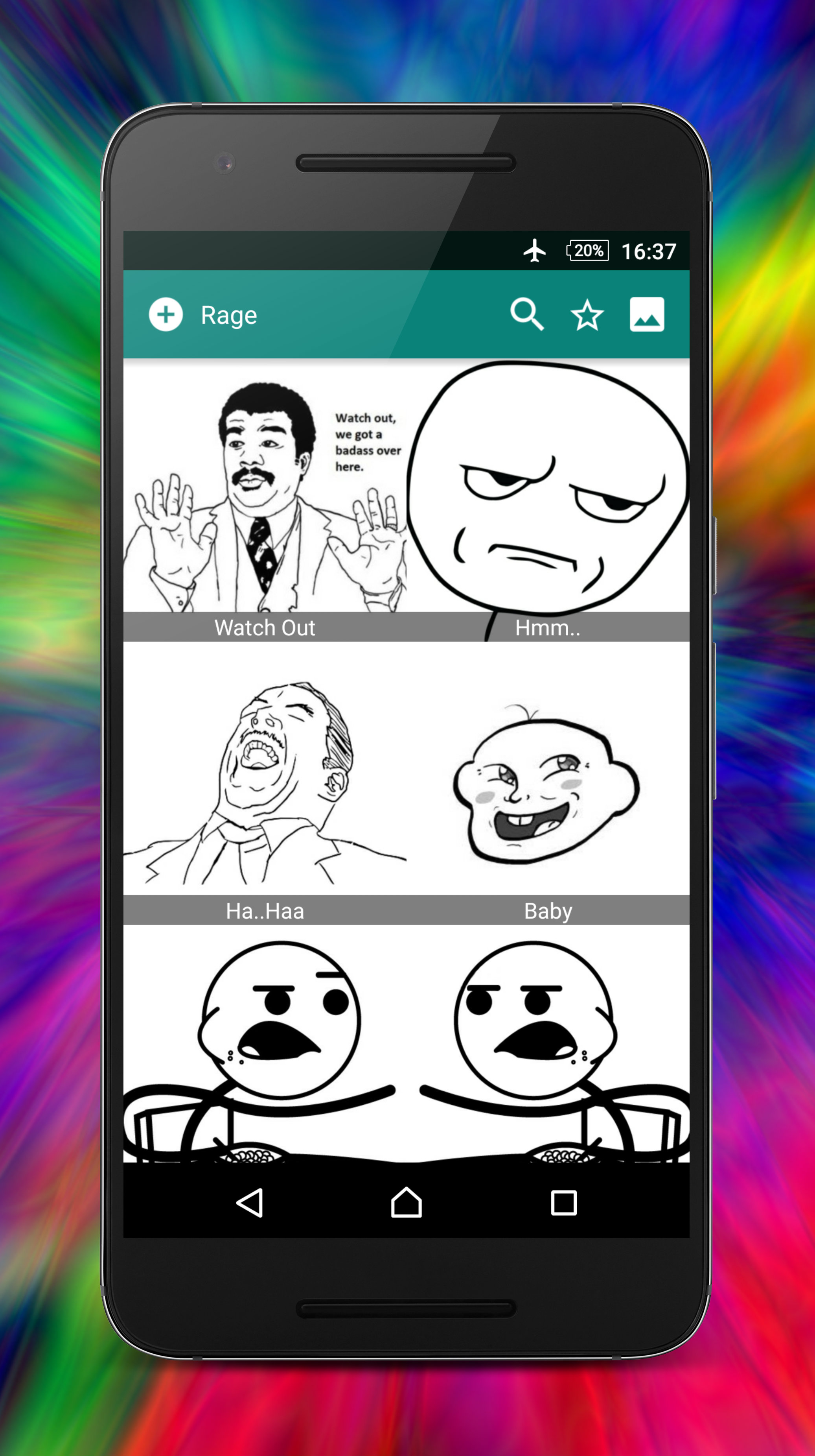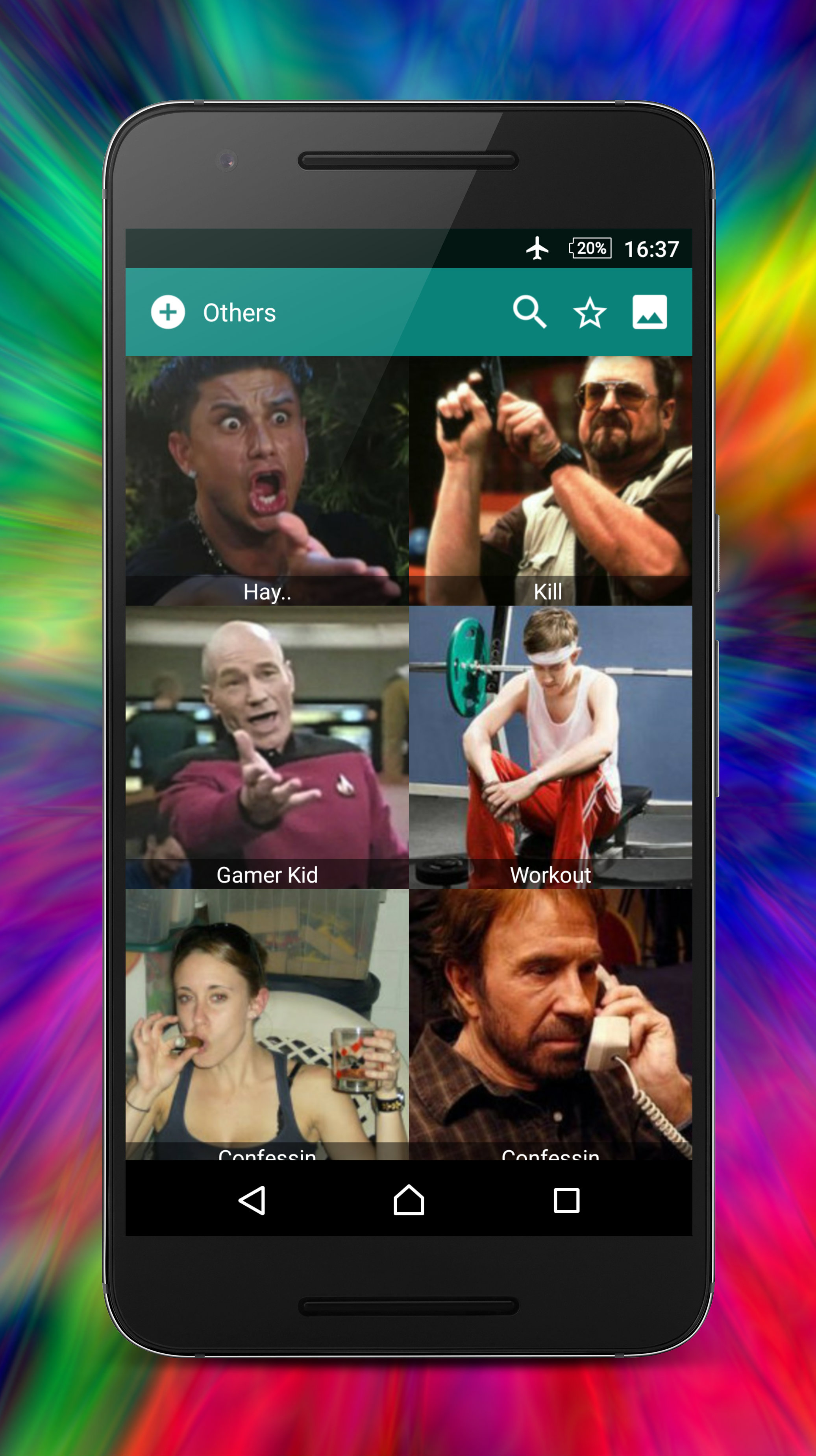 Meme generator creator, create and share your own memes chat and social networks. Best creator memes with the phrases you choose, you can even use your own photos from gallery and add more fun text. In this funny app you'll find the following categories of memes in Spanish or in the language you choose. ⊙ Animal Memes ⊙ Various ⊙ Drawings ⊙ Trollface memes ⊙ Memes counselors ⊙ Other With super meme maker can also ✓ Edit the text by changing the font, color, shadow, rotate the image .