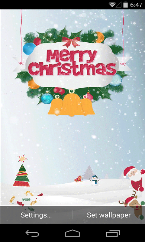 Merry Christmas! and enjoy this Live Wallpaper. To Open:Home->Menu->Wallpapers->Live Wallpapers. It is perfect for winter holidays, for holy night, Christmas day and new year. Welcome 2015 and celebrate Christmas eve with this stunning live wallpaper and enjoy all year round!