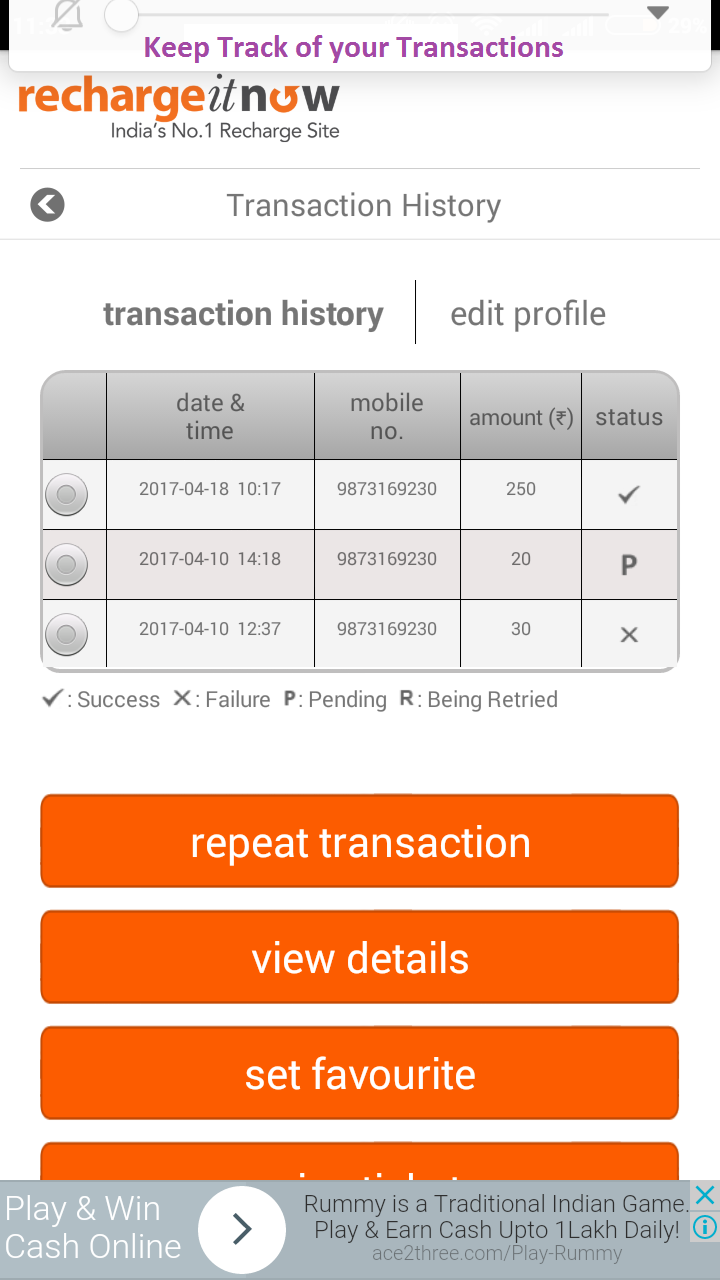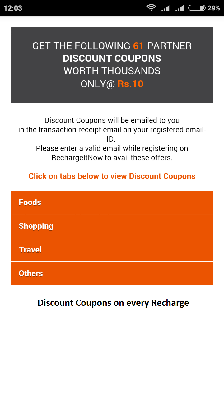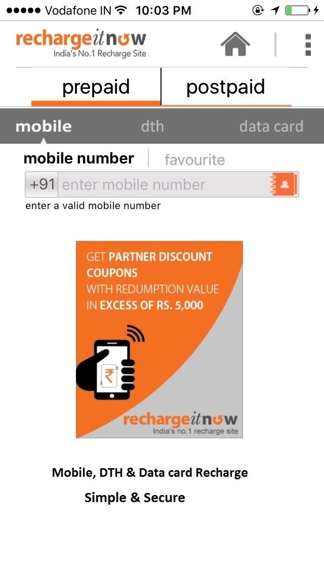 RechargeItNow is trusted by more than 13 million users and is India's No. 1 Mobile recharge & bill payment solution. It provides simple and instant DTH & Mobile Recharge for Airtel, Reliance GSM, Tata Indicom & Tata Docomo, Jio recharge, BSNL, postpaid bill payment offers, discount coupons and cash back. Get amazing discounts and cash backs on all types of transactions. Rechargeitnow app has online, postpaid bill payment offers, Bill payment and cash back deals. Get free recharge, instant cou