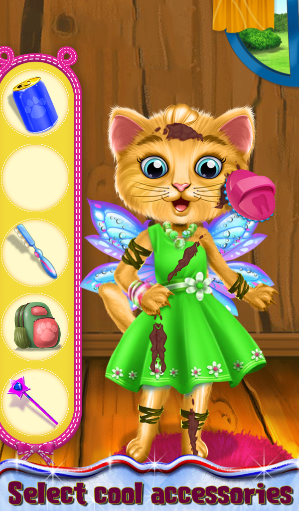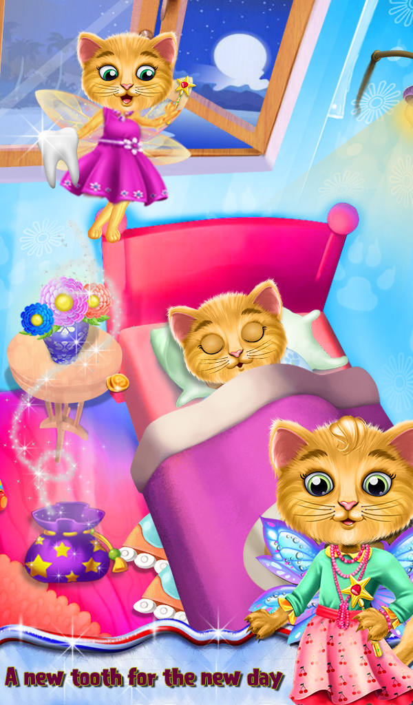 Hello Kids, do you like playing fairy tale games? It's a perfect time to meet the kitty tooth fairy. Here little kitty is very active and she can't wait to explore the whole world, so before she can go out, she will need your help. Start the first level, where you select the object like toothpaste, toothbrush, tongue cleaner and redesigned teeth cleaning kit.