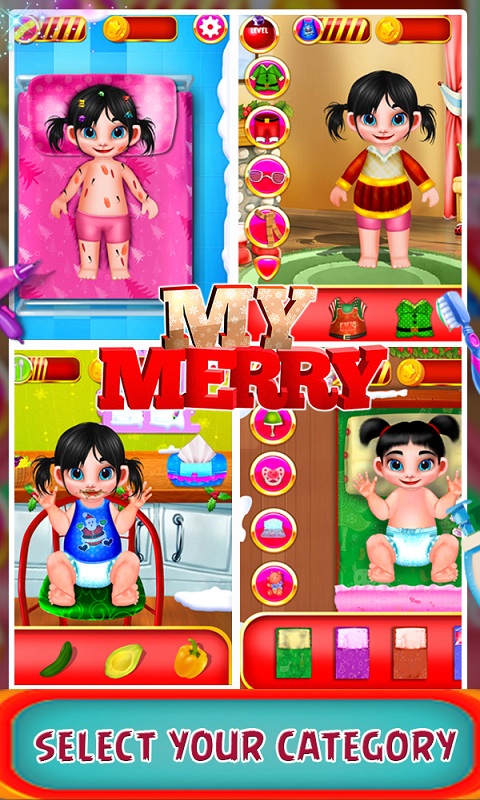 Help a little girl in this game to get ready for Christmas party. Help her to sleep well, feed with her favorite foods, dress up well, take care of her when she got injured & play with her. Different mini games included.