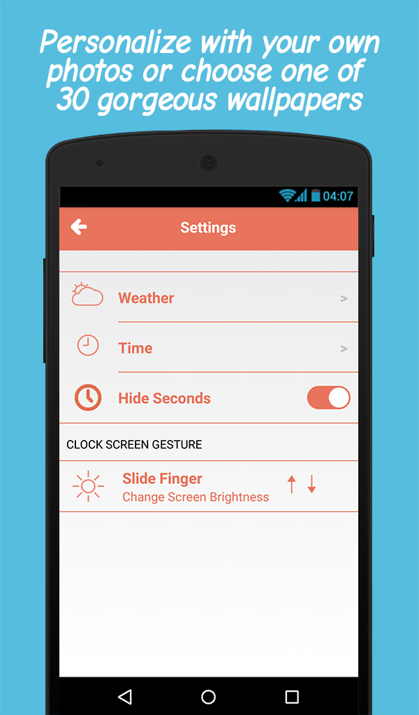 - Pick wallpapers from your Photo Album and Nightstand Central will automatically cycle the background image among these however often you'd like.