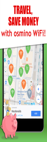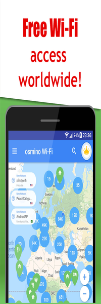 Free online and offline WiFi maps with passwords, public and private hotspots all around the world! Works even with no Internet connection! osmino Free WiFi App - it's 120 million free WiFi hotspots! Fast and free internet wherever you are! Free and easy way to find WiFi passwords! Offline maps and password database available immediately and for free! osmino WiFi - a manager to search public wifi hotspots and passwords to private networks accross the world. Download offline maps of the wh