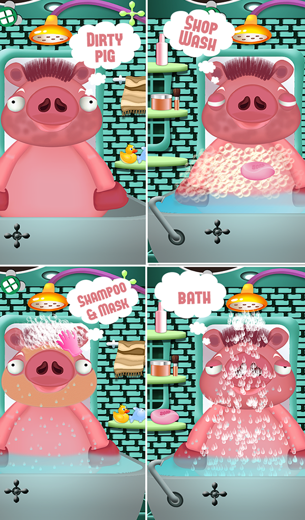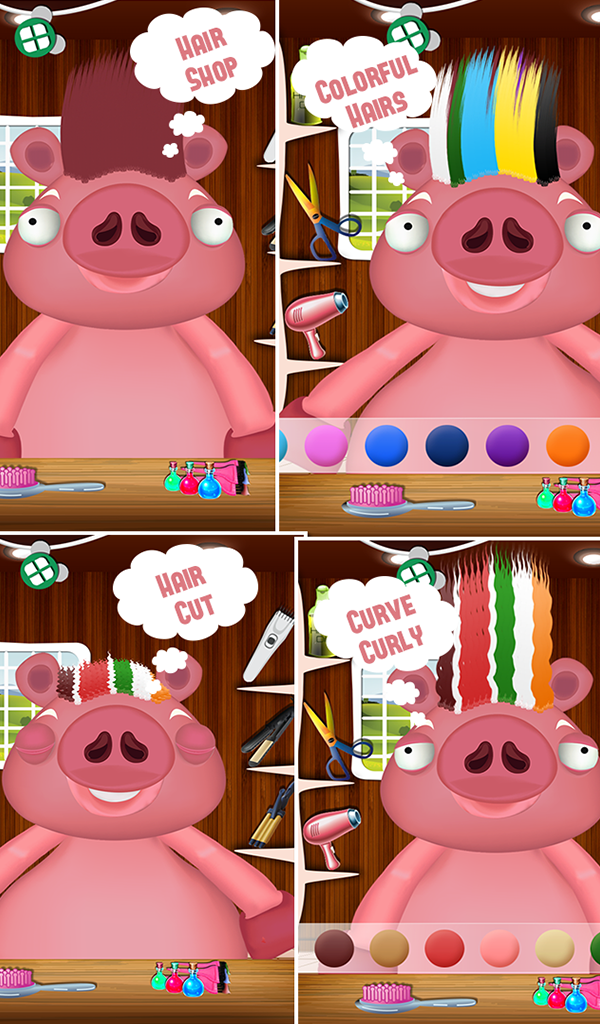 1st time in Google Play Pig Hair salon, Makeover & Dressup 3 in 1 fun games. The cutest Pig Salon game has arrived!!! Now Dress up Pig the way you want to. We included 3 different mini fun games: Makeover, Hair Salon & Dressup the Pig. Makeover : * Give Pig lovely Bath * Cleanup with Towel * Cleanup Dirty nose with Paper Napkin * Give Amazing Facial to Pig Hair Salon : * Cut Hair with Tap on Pig's hair * Dry it's hair * Hair oil will make Pig's hair grow * Make a Curly hair * Yo