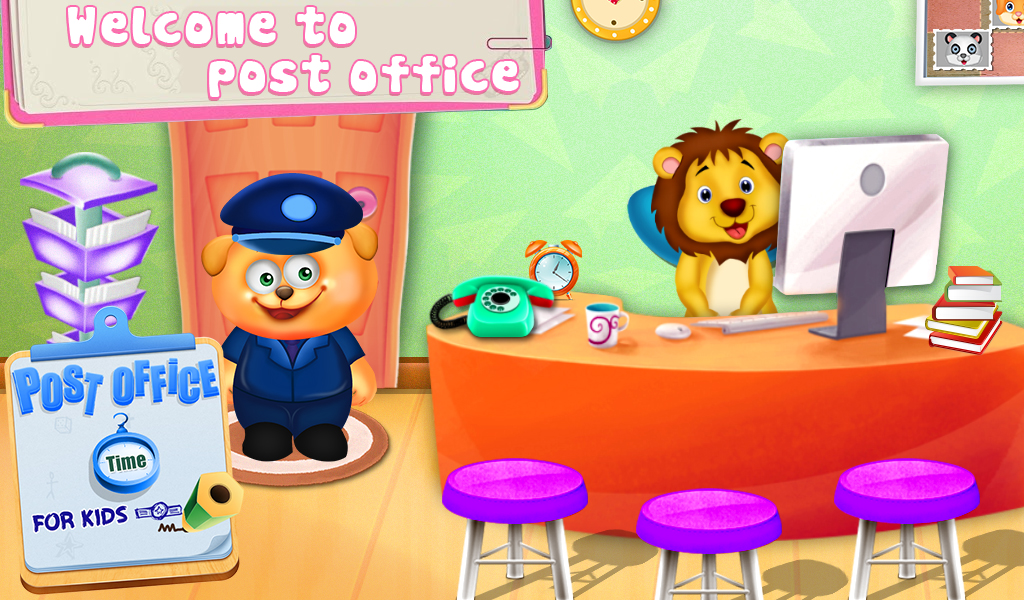 We receive couriers, books and letters sometimes from the post office. But have you ever wondered what all procedures the package that you receive has to complete in the post office so that the parcel is correctly passed to you without any error? Let's watch and play all those fun procedures and activities in a post office in this post office time for kid's game. Complete all the fun tasks like weighing the parcel, then checking it and posting a funny stamp into it. Put all the different suit ca