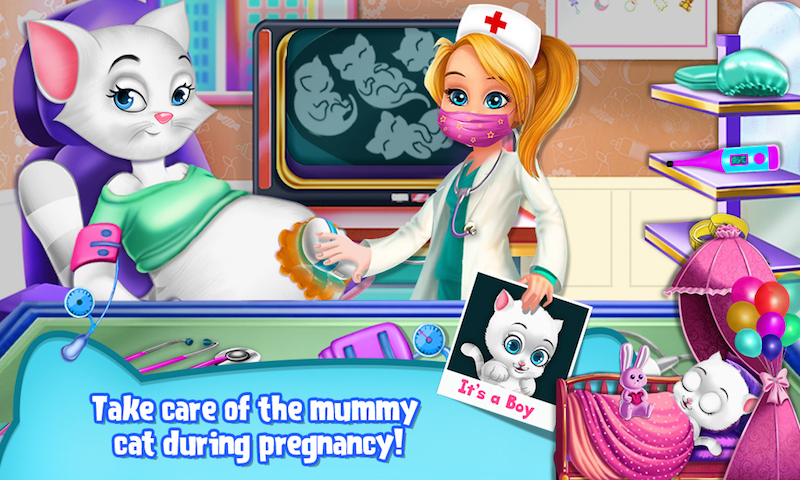 Bella kitty is pregnant with a new baby and she needs your help! It's a first baby for her so she is very scared. So become a good friend, join Bella on her journey through pregnancy. In this game you enjoy over 4 interactive activities like mummy care, baby care, check up and more. First give her a tablet, healthy food and more in health checkup. You can also decorate the new baby's nursery with different designs. Then check below temperature and heartbeat using a stethoscope. At the end baby i