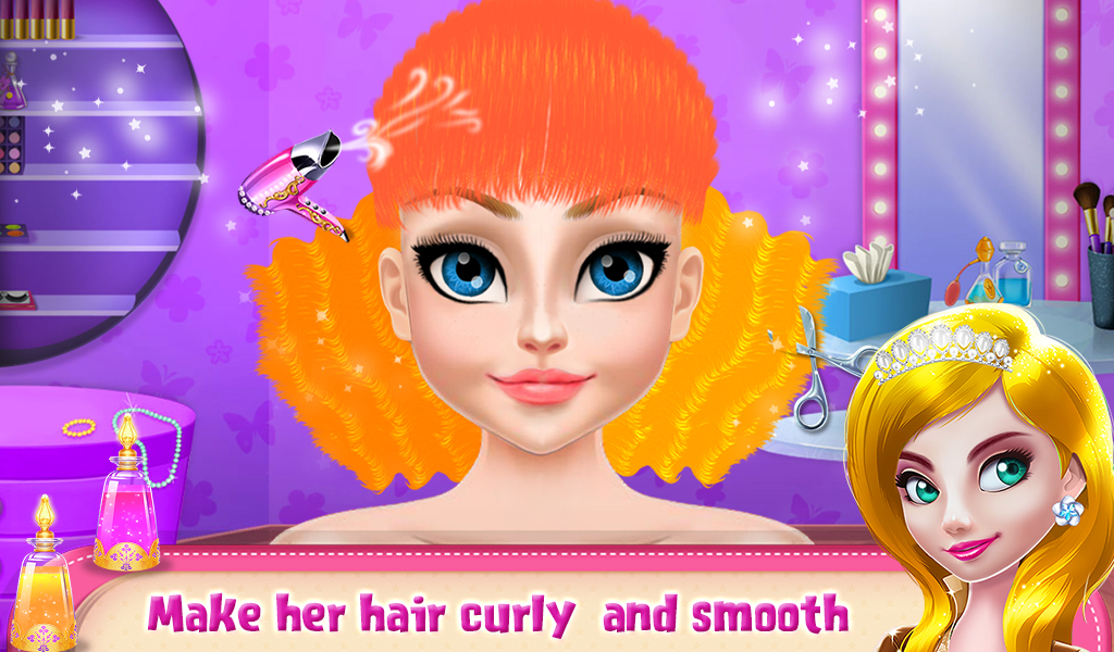 Hello girls, have you ever dreamed of becoming a popular hair stylist? Let your imagination go wild with this amazing Princess doll hairstyle game for girls. With this game you'll get a chance to express your hairdresser skills and discover some of the latest hairstyle ideas for girls. Use the different comb, hairpin, buckle and create the attractive hairstyle for the princess. Here in this game we included many more fun activities for you, like a hair treatment, spa, makeup and dress up. In a m