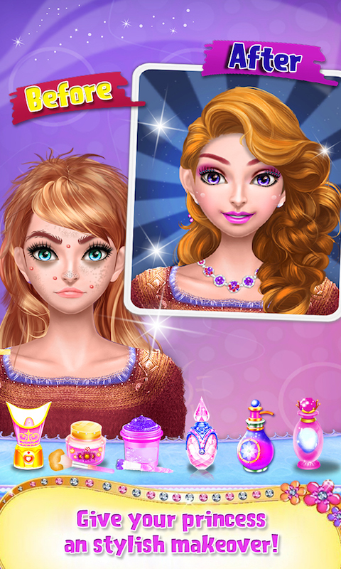 Welcome to the Princess Dream Salon Makeover. Explore your amazing makeover skills in this salon game. Our beautiful princess wants to look gorgeous so let's help her by doing fashionable dress up for her night party. Firstly, give a spa to princess in your spa salon, which contains all the necessary beauty products like scrubs, mask, pimple remover, plucker, shower, soap, towel, shampoo. Next, go to the hair salon and give her perfect hairstyle. After hair treatment, you have responsibilities t