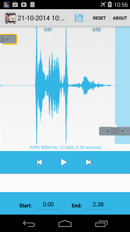 Edit your songs cutting them to select the desired audio portion and save it as your ring tone / alarm / Music / notification tone. The results of his songs for ringtones will be stored in "/ mnt / sdcard / media / audio". Make your own MP3 ringtones fast and easy thanks to mp3 ringtone generator. Also you can record live sound thanks to recording function after ringtone to edit and crop the best parts free. Supports MP3, WAV, AAC, AMR, and most other music formats. Furthermore, thanks to