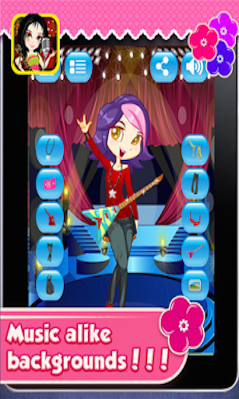 Today you are going to meet a Rockstar girl! She is a talented rock star and a very chic person. And she wants to hire you to help her choose her hairstyle and outfit! Wow that sounds great,