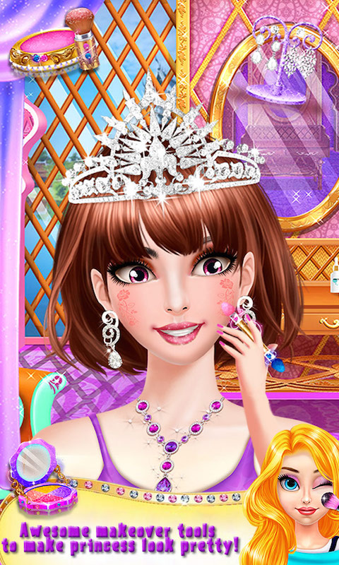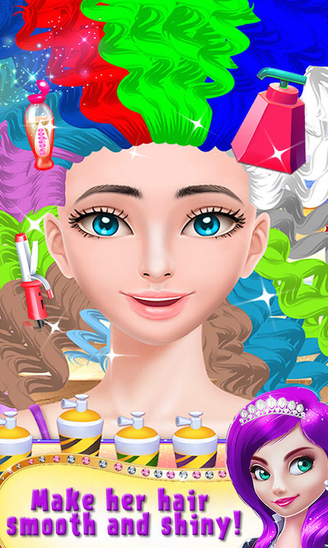 Hello girls. Are you ready to play a new funny salon game with a little princess? As a perfect makeover specialist, you have your own salon in this game. Create your own royal style that the no one seen before! What are you waiting for? Open the game and press play to start, firstly choose your favorite girl. Then you should comb the hair carefully and wash it to prepare for styling and use your imagination to create an amazing hairstyle for a princess. After the hair salon you have to go for a
