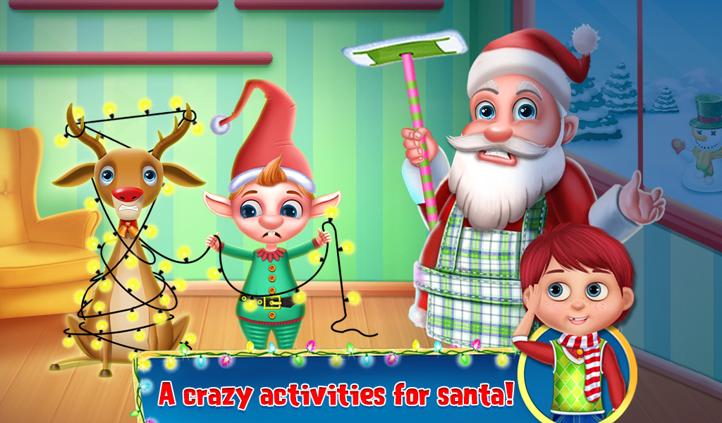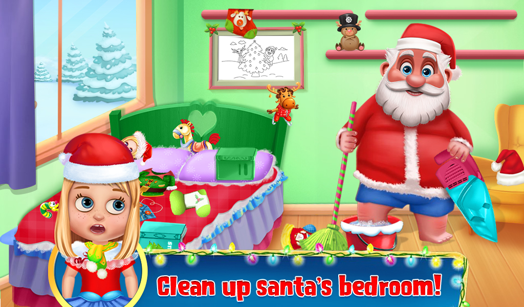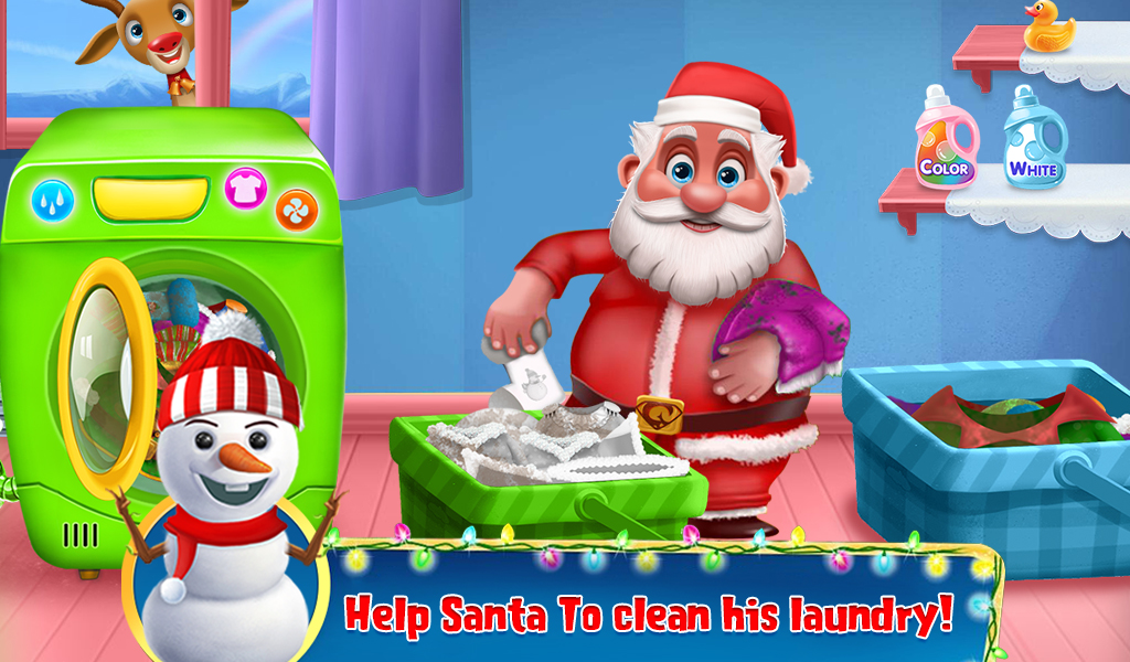 Cleaning up can be hard work, but it doesn't have to be with the Santa Claus's Little Helper game. Here you can help Santa to clean up his messy house for Christmas. In this game we added the lots of different activities that you complete with Santa clause like wash the dirty clothes, clean the messy living room, drag the toys in the right place, Dress up Santa with attractive outfits, hang Santa's clothes, grow your own Christmas tree, match Christmas socks, painting, help Santa to reach the de