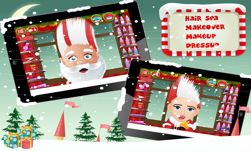 1st time in Play store santa Hair salon, Makeover & Dressup game. Now Dress up your favourite santa the way you want. We can have 3 different services: Makeover, Hair Salon & Dressup. Makeover : * Give your santa bath * Cleanup with towel * Give Amazing Facial Hair Salon : * Cut Hair with Tap on santa's hair * Dry its hair * Make a Curly hair * You can also Straitning its hair * Make a colorful hair with given hair shades Dress Up : * Use of multiple Accessories * Creat