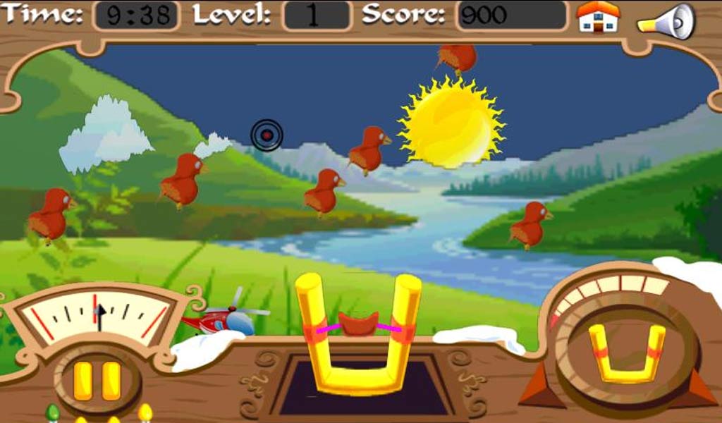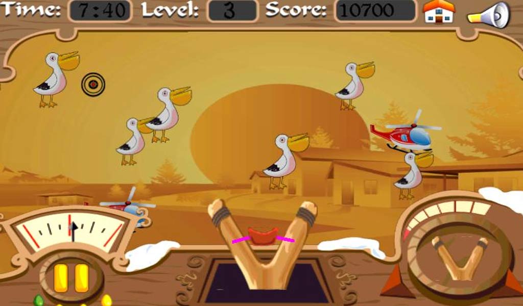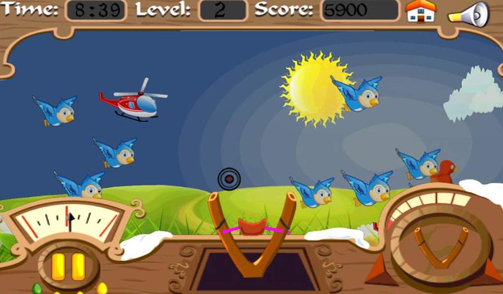 Sling Shooter!!! -Fun game, with different kind of birds and levels. -Shoot birds, which are flying in random speed. -The more fast bird you hit, the more score you will gain!!! So be fast.. -Shoot balloons which contains +500 bonus points. -Do not hit Helicopters, as it will reduce the score by 100. -The game contains 10 minutes of time limit and 10 levels. -Each level contains different kind of birds and backgrounds. -You can also choose different kinds of slings as you wish. So Enj