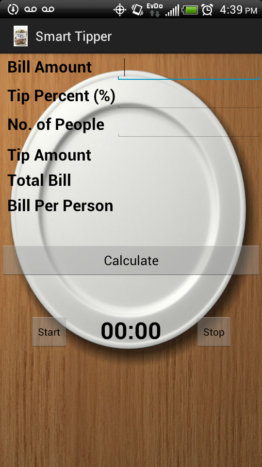 Easily calculate the tip and split the bill with Smart Tipper. This tip calculator app not only calculates tip quickly and easily but also helps to split the bill between any number of people. In addition to tip calculation a handy timer is included so you can keep track of how long you have to spend waiting.