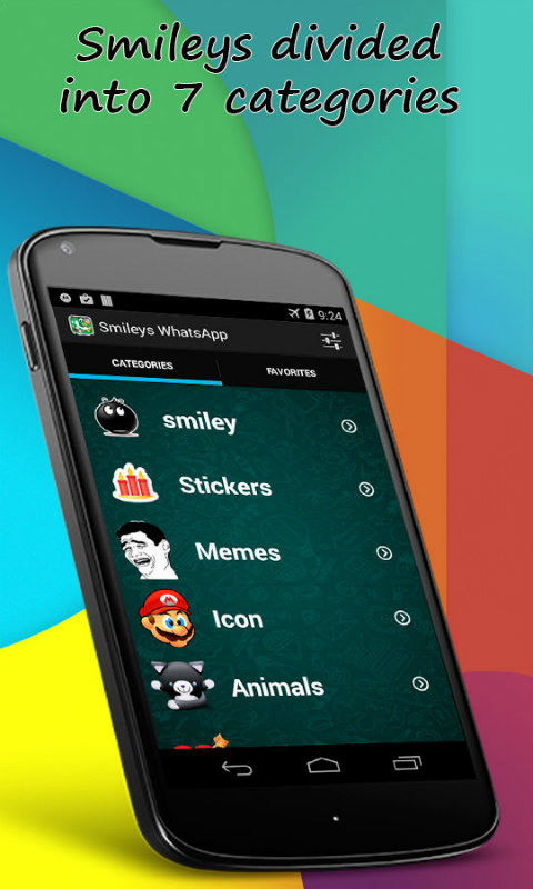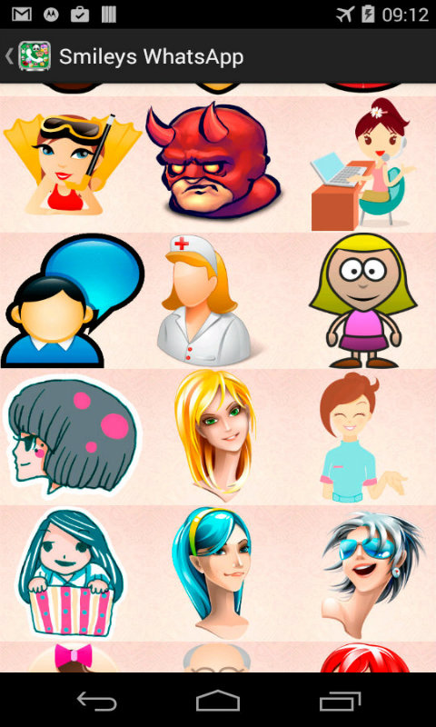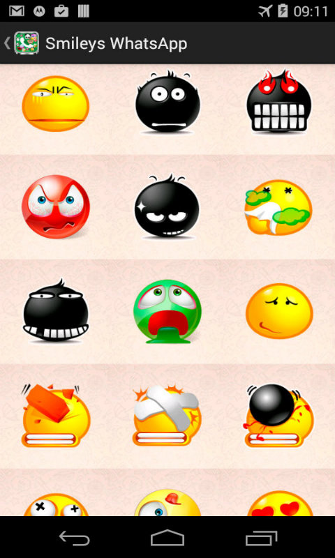 Smileys for Whatsapp, Thanks to this aplication you will can send Smileys with an atractive design to your contacts, easy and fast because to an icon direct acces that the aplication will include in whatsapp, also you will can select other messenger aplication to send it. Emoticons categories: Smileys- Enjoy the best quality and a lot of smiley images Stickers- Last generation stickers with and attractive design Memes- Troll images but used by users Icon- The icon to can show a location