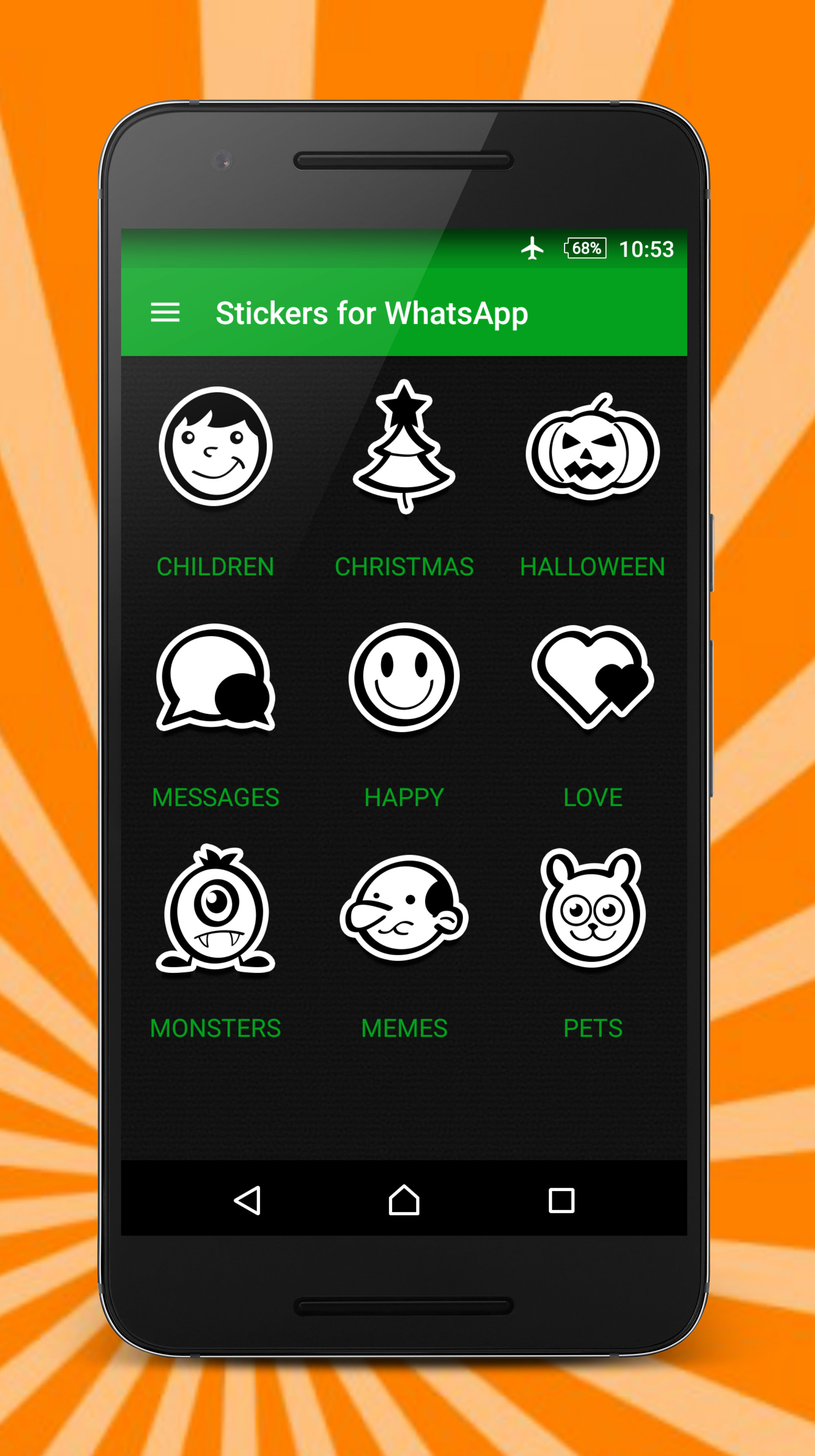 Stickers HD to share by chat and social networking, show your emotions and surprise your friends with the most fun to share with friends and family funny stickers, it is very easy to use, free and different categories to suit your mood or the time of year when you need it. You can share these fun stickers for social networks and chats as whatsapp, WeChat, facebook messenger, line, skype, telegram, google +, Instagram and more. ✿✿✿ How is it used? ✿✿✿ ① Open the application of stickers to cha