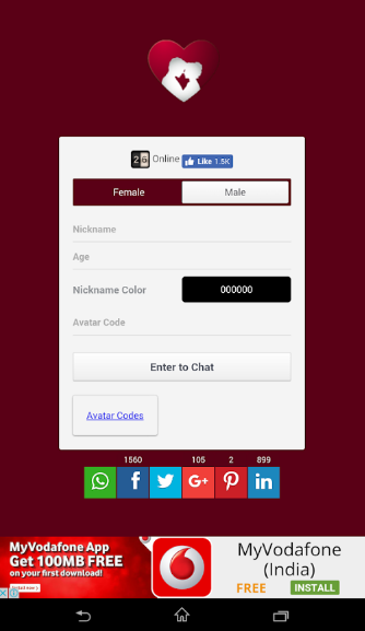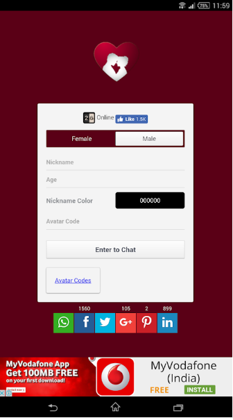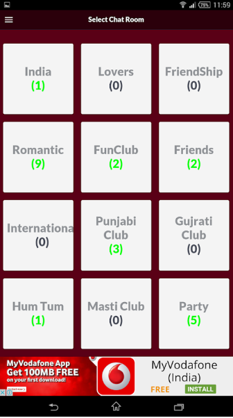 Free Chat Rooms Live Online Without Registration, you can install and enter to chat rooms without registration, 100% free chat. Live Chat Room is one of the best chat rooms around. We provides an app chat interface for chatting in the worlds Chat room. You can join our free chat rooms without registration and you are NOT required to give out your personal details to join the Live Chat Rooms. Whether you are looking for a casual and friendly chat or serious relationship and dating, our online