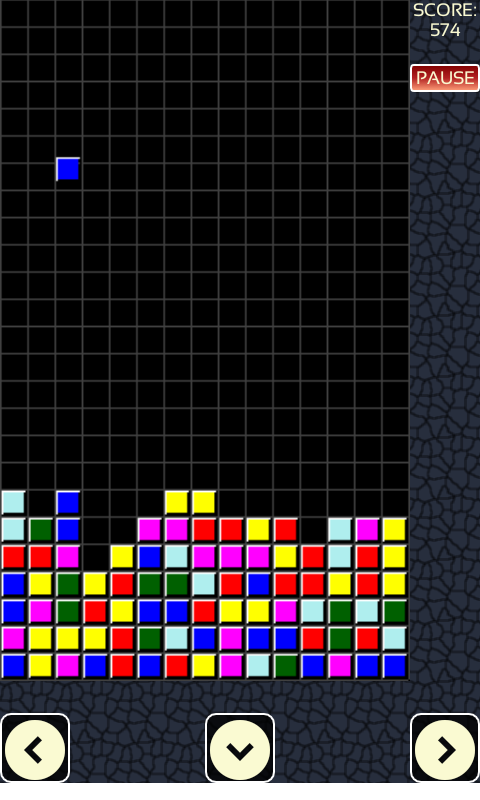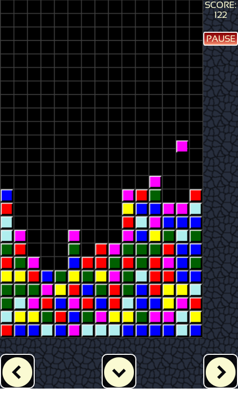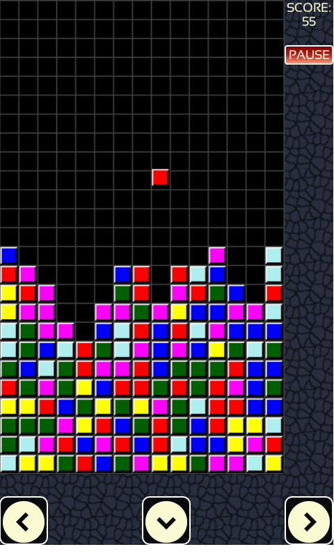 Tile remover is an alternative of the falling down puzzle. Try to remove all tiles from the playground. Colored tiles are falling down one by one in a round and you must place them how the same colors shall be alongside. If you make a group of tiles [by at least 3 tiles] from same color then them will be removed. When you skip more than 1 or 2 round without making a group then a new line with tiles will appear of the bottom side of playground. Have fun!