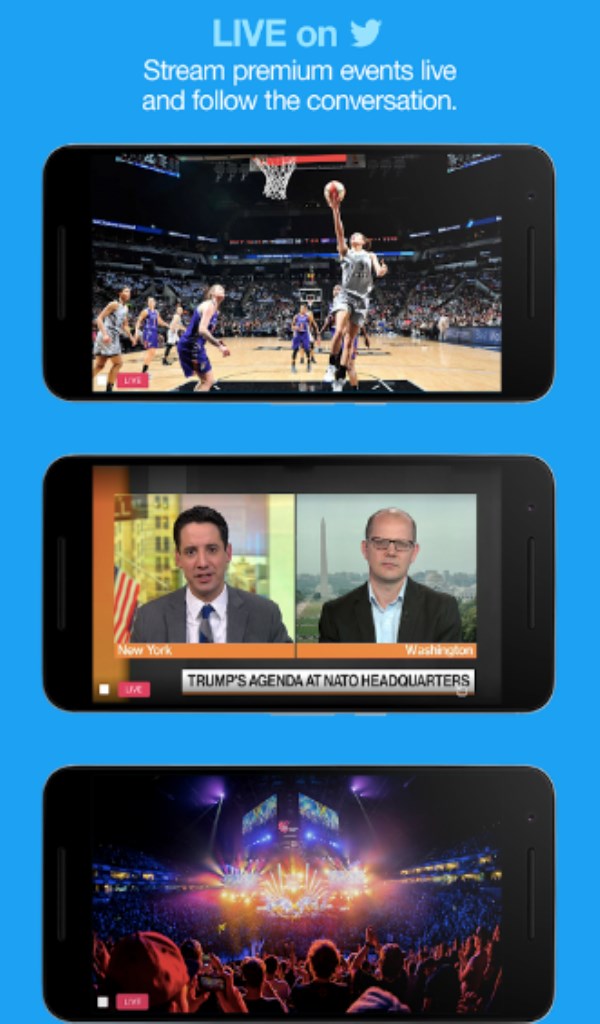 From breaking news and entertainment to sports, politics, and everyday interests, when it happens in the world, it happens on Twitter first. See all sides of the story. Join the conversation. Watch live streaming events. Twitter is what’s happening in the world and what people are talking about right now. More highlights: - Watch premium and exclusive live streams directly from your mobile device. No account required. - Go Live with a tap or sit back and watch events unfold from arou