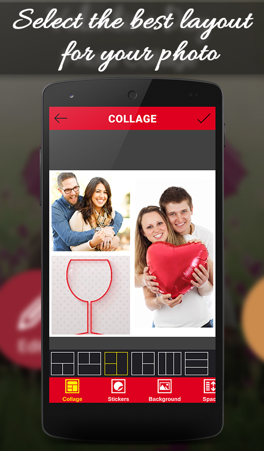 Valentine Day has almost arrived and we bring you this amazing application to make your Valentine day even more special. In this application, you will get to collage and edit your favourite photos using various filters. As the first step taps on the edit button and fetch the photo you love from your gallery or take a fresh picture and then edit it with different options. And then we have also got the collage option where you will be able to collate various images in many designs.