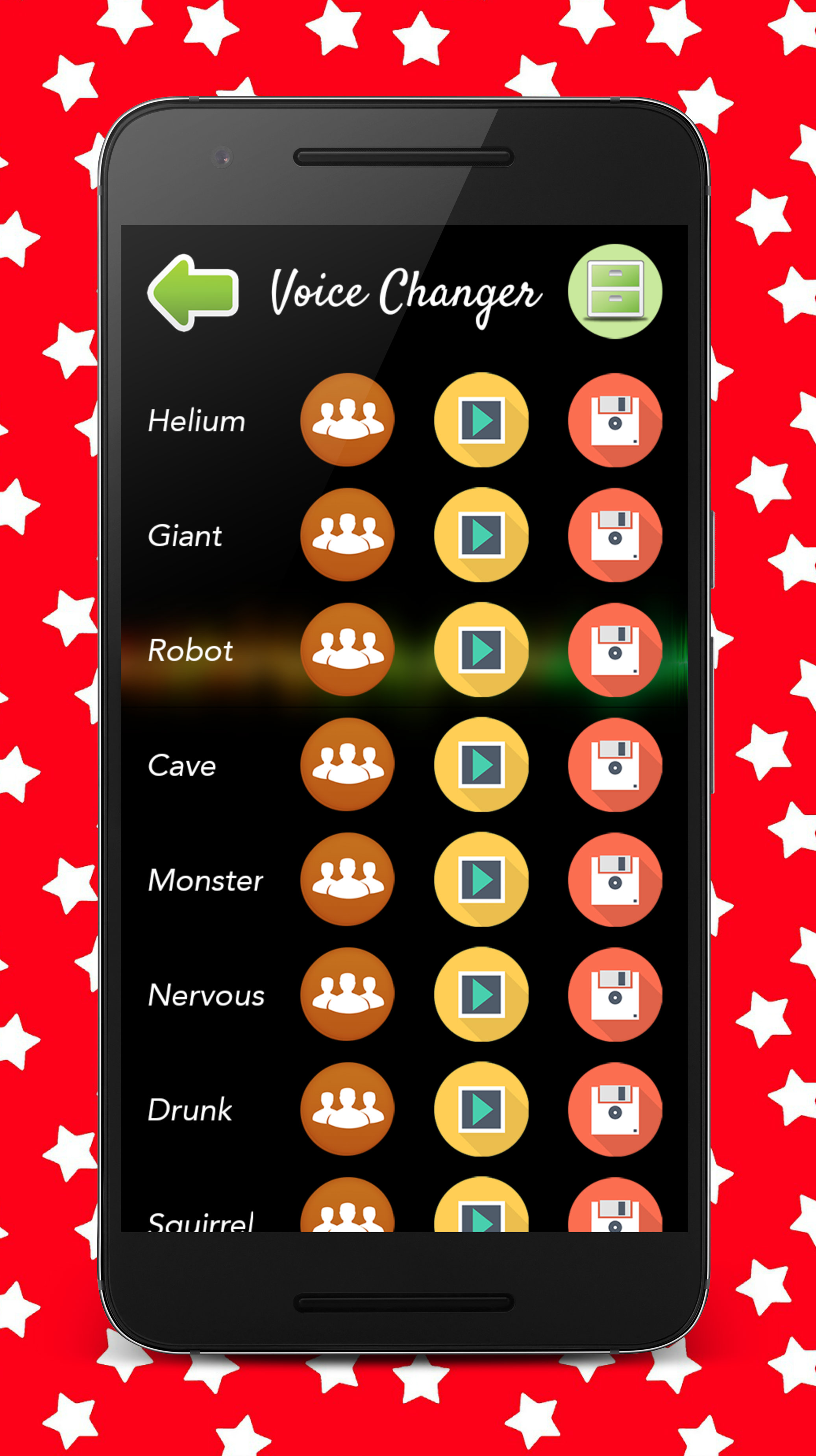 Voice changer effects, change your voice. This application allows you change your voice so that you can apply sound effects in a recording your own voice, your voice sent directly modified by whatsapp, or the app you want (telegram, messenger, line, instagram ...), you also It allows you to save your modified voice sent later or used as ringtone or notification. You have the following sound effects to voice modifier: - Helium Voice - Giant - Robot - Cave - Monster - Nervous - Alcoholi
