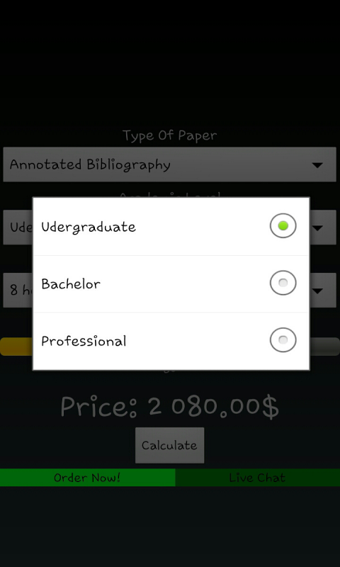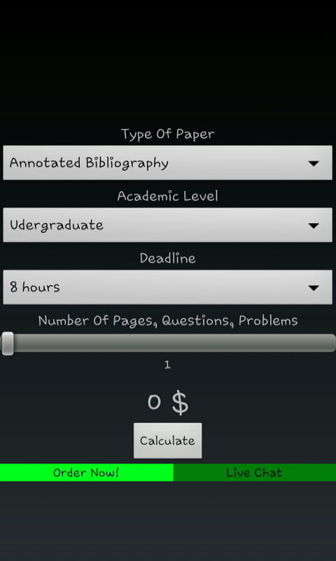 Find best custom writing price calculator! Fast order button and live chat help you to clear all questions before an order. If you think about getting more free time, there are not so many things you can do to avoid doing your homework. In fact, if you are trying to get a really good grade, there are even less options to choose from.