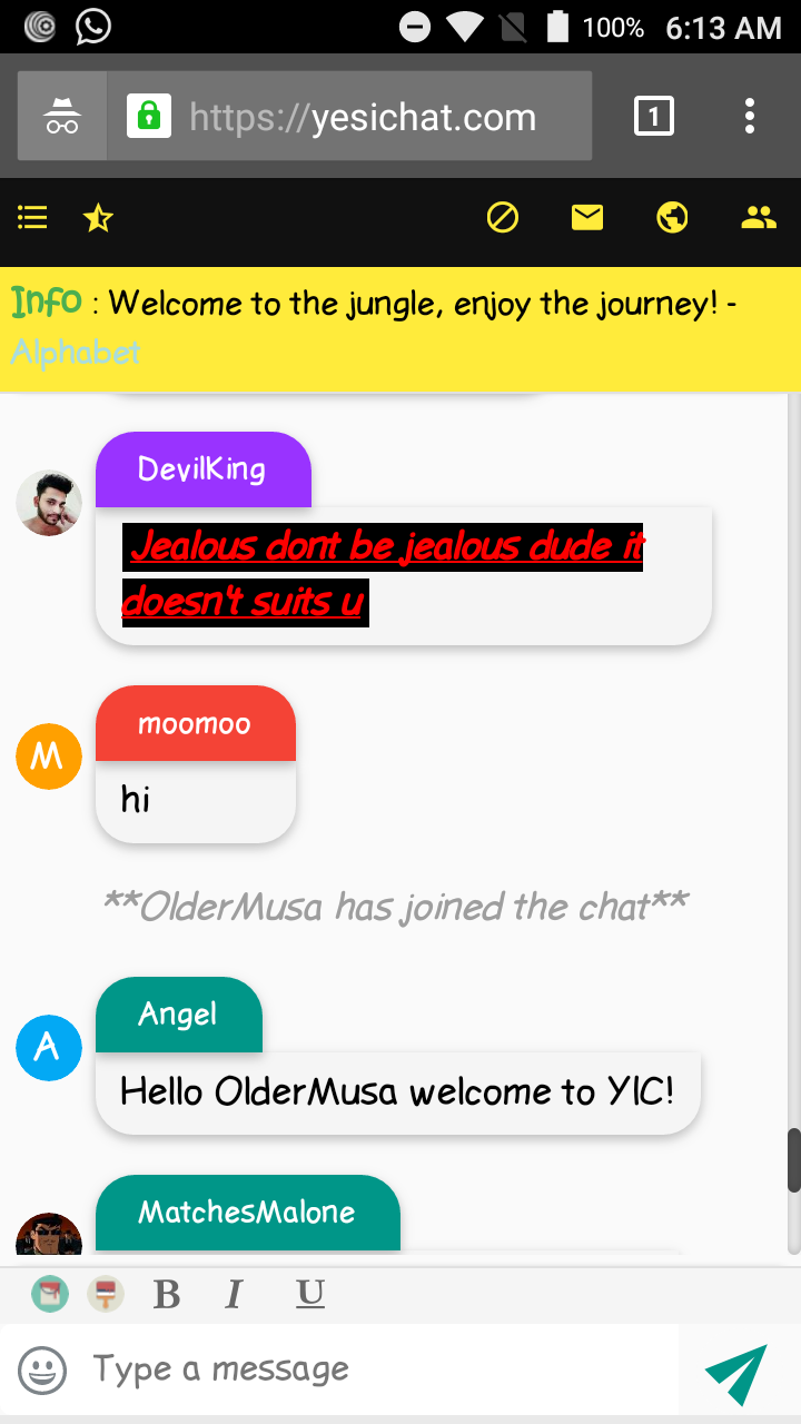 Online Chat Rooms, Freedom, Guest, without registration Yes I Chat is an international chatroom where you can chat as you like. No limits on any user. No sign up, registration and login to use YIC. Random chatting. Free gaming chat rooms. YesIChat is a cool place to meet people at random and anonimity. YesIchat has a number of chatrooms to meet cool new people from around the globe. Private Chat is among the basic features of YesIChat. And this online chat is free of cost. No charges are appli